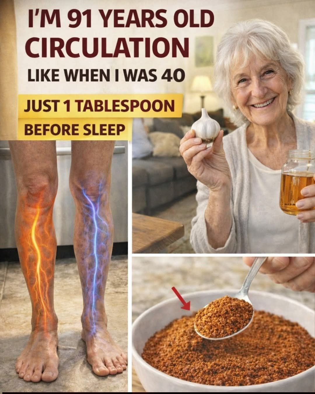 If you’re over 60 and often notice your feet feeling cold in the morning, your legs heavy after a day on your feet, or occasional tingling that disrupts your sleep, you’re far from alone. These discomforts can make simple activities like climbing stairs or enjoying a walk feel more challenging than they should. The good news is there’s a straightforward, natural approach that many older adults find helpful for supporting healthy blood flow—and it starts with something you can try tonight.But that’s not all… keep reading to discover one easy combination that research suggests may play a role in promoting relaxation of blood vessels while you rest.Why Circulation Can Become a Challenge as We AgeAs we get older, it’s common for blood vessels to naturally lose some elasticity, and daily movement might decrease. This can lead to slower blood flow, especially in the lower extremities like the legs and feet.Common signs many seniors experience include:Cold sensations in toes or feetHeaviness or fatigue in the legsOccasional swelling around the anklesNighttime leg discomfortVisible changes in veinsTingling sensationsThese aren’t always just “normal aging”—lifestyle factors and natural changes play a big role. The encouraging part? Studies show that certain nutrients from everyday foods can help support vascular health and blood flow.