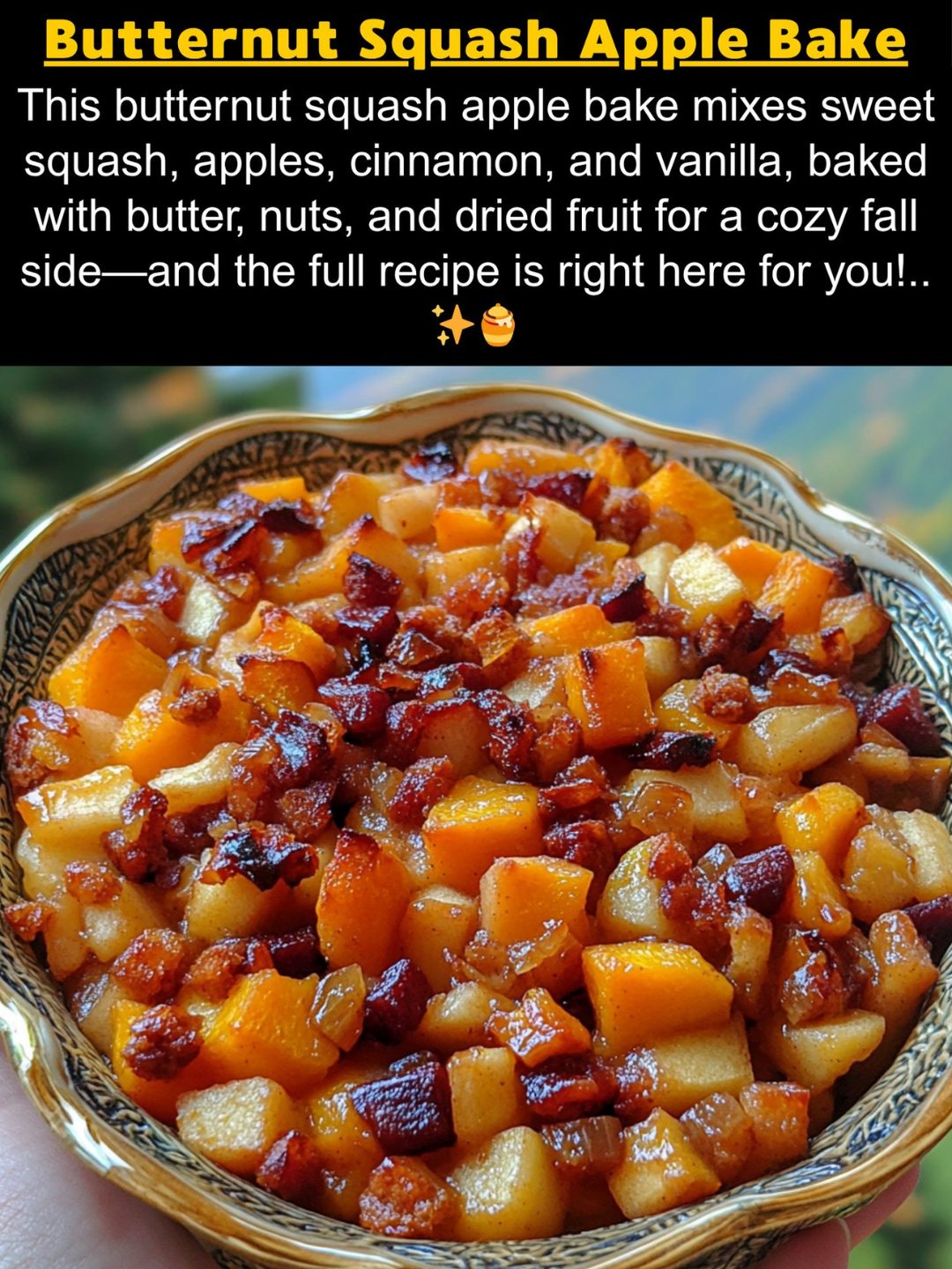 This Butternut Squash Apple Bake—a tender, lightly sweetened casserole where roasted butternut squash meets juicy apples, kissed with cinnamon, maple, and a hint of butter.