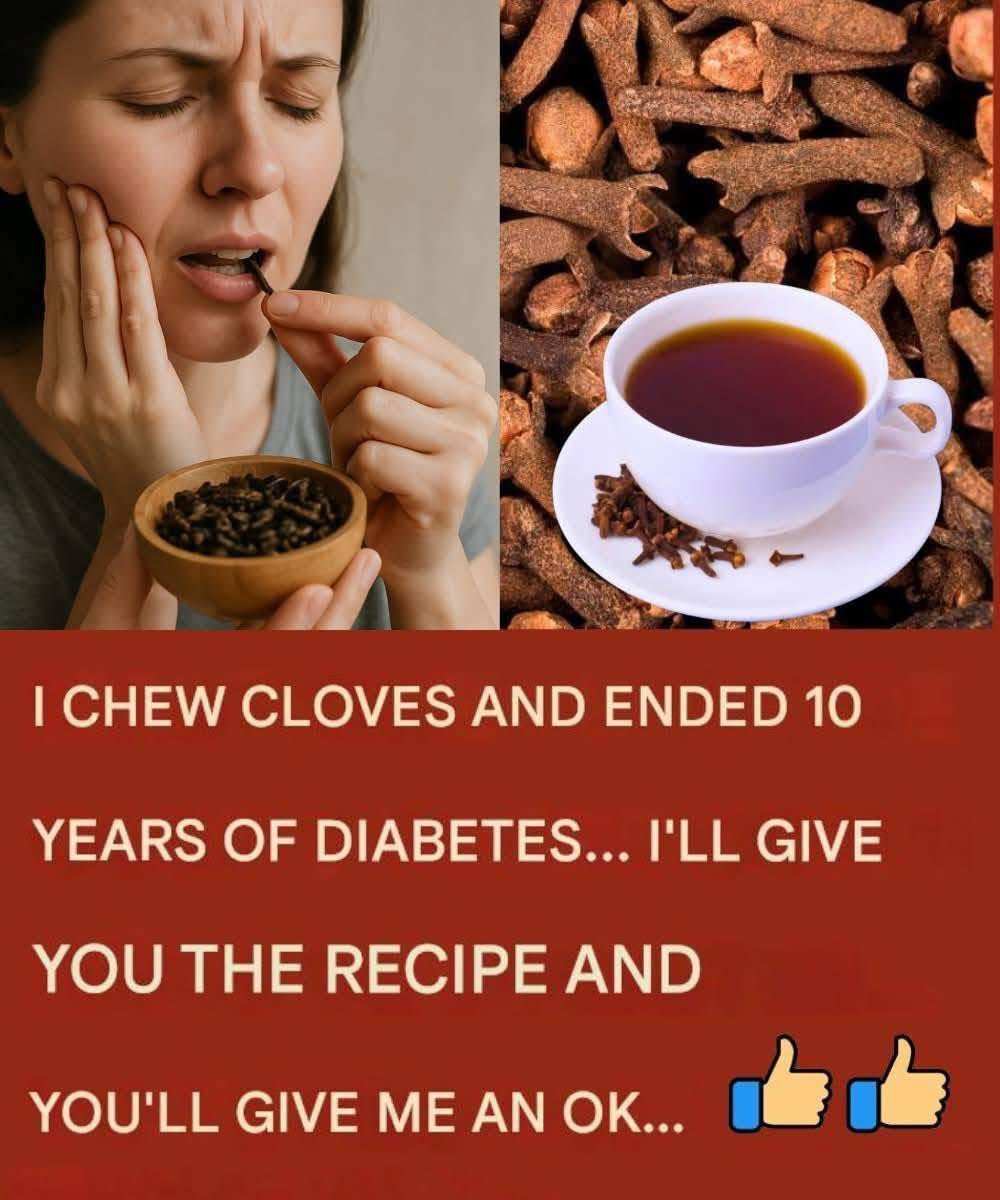 A Tiny Spice with Huge Healing PowerClove is not just a kitchen spice — it’s a natural medicine chest in miniature. Used for centuries in Chinese, Indian, and Arabic traditions, this aromatic bud is rich in eugenol, a compound with powerful antioxidant, anti-inflammatory, antibacterial, and pain-relieving properties.Modern studies confirm that chewing cloves or drinking clove tea can help balance blood sugar, strengthen immunity, improve digestion, and much more. Here’s everything you need to know about this amazing spice.🌟 20 Benefits of Chewing 2 Cloves DailyBoosts the immune system 🛡️Improves digestion and reduces bloating 🌱Relieves toothache and gum pain 🦷Eliminates bad breath 👄Regulates blood sugar and improves insulin sensitivity 🍃Supports liver detoxification 🩸Reduces joint pain and inflammation 💪Enhances blood circulation ❤️Clears nasal congestion and colds 🌬️Boosts memory and concentration 🧠Aids weight loss ⚡Prevents urinary infections 🚻Lowers bad cholesterol (LDL) and increases good (HDL) 💜Calms the nervous system and reduces anxiety 😌Slows premature aging ✨Improves skin health (acne, spots) 🌸Increases energy and vitality 🌞Strengthens bones and prevents osteoporosis 🦴Protects teeth and gums from cavities 🪥Promotes restful sleep 😴🍵 3 Easy Recipes to Use