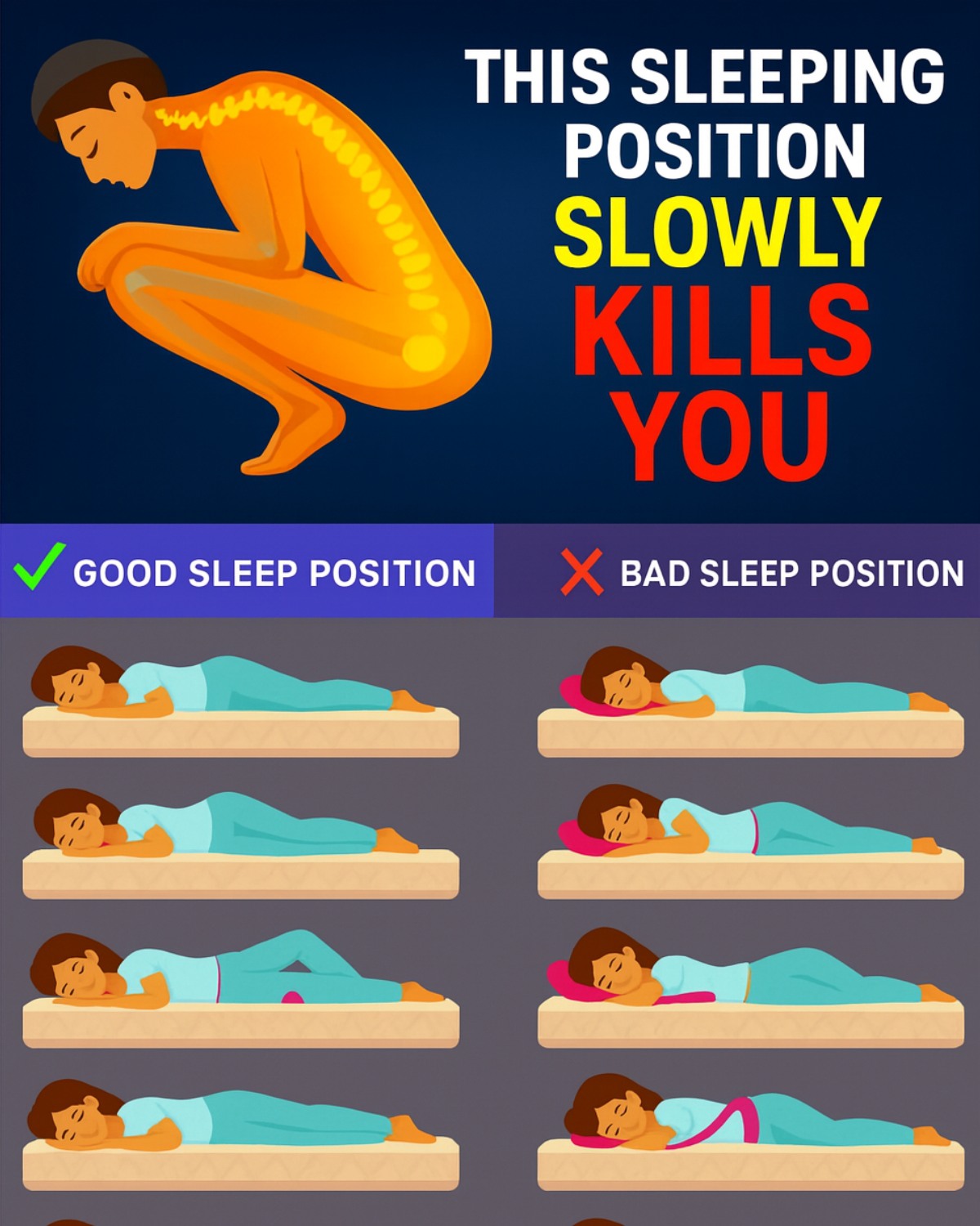 The consequences aren’t just about aches. Research suggests poor sleep posture can worsen conditions like sleep apnea—a condition where breathing stops briefly during sleep—or increase strain on your spine. For older adults, this can mean more fatigue, higher fall risks, or even heart strain over time. But what’s the most problematic position, and how can you fix it? Let’s count down three key insights, with a surprising reveal at the end that could change how you sleep.